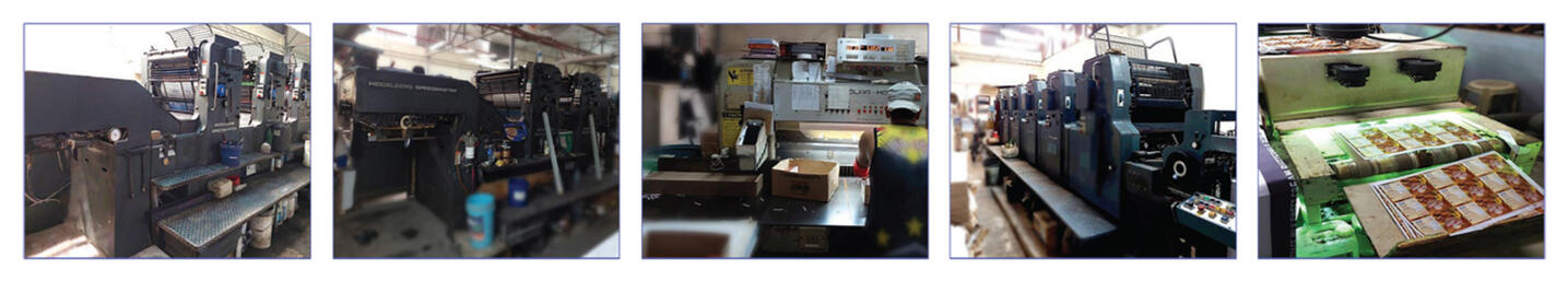 • Pre-press, press, and post-press operations such as binding, cutting, die-cutting, pasting,